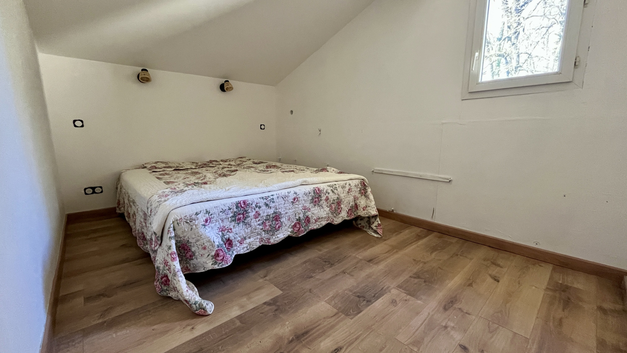 À l'étage, l'espace nuit se compose de quatre chambres, un wc indépendant et une salle d'eau à créer (arrivées et évacuations d'eau déjà sur place).